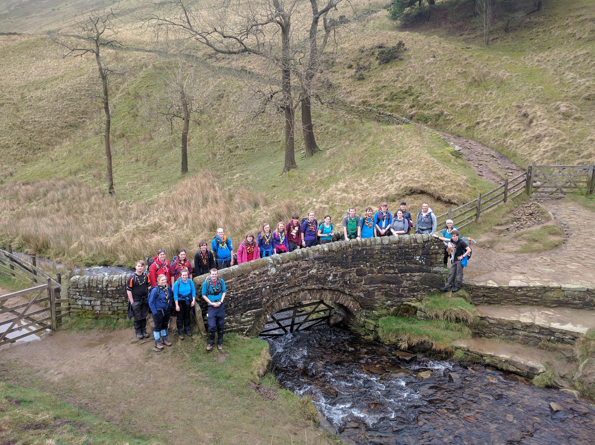 Our Winter camp this year would be our first joint weekend away with Network. All 24 of us set off from Southampton with a trailer full of kit, a minibus and car full of people ready for a weekend spent exploring the Peak District. After a bit of a shaky start with the keys for the Scout & Guide centre not appearing for a while, soon the food shopping was done and it wasn’t long before the minibus arrived. After a long journey we set up our beds (as we were staying inside) and enjoyed soup as our supper before getting a good rest ready to walk up Kinder Scout the next day.