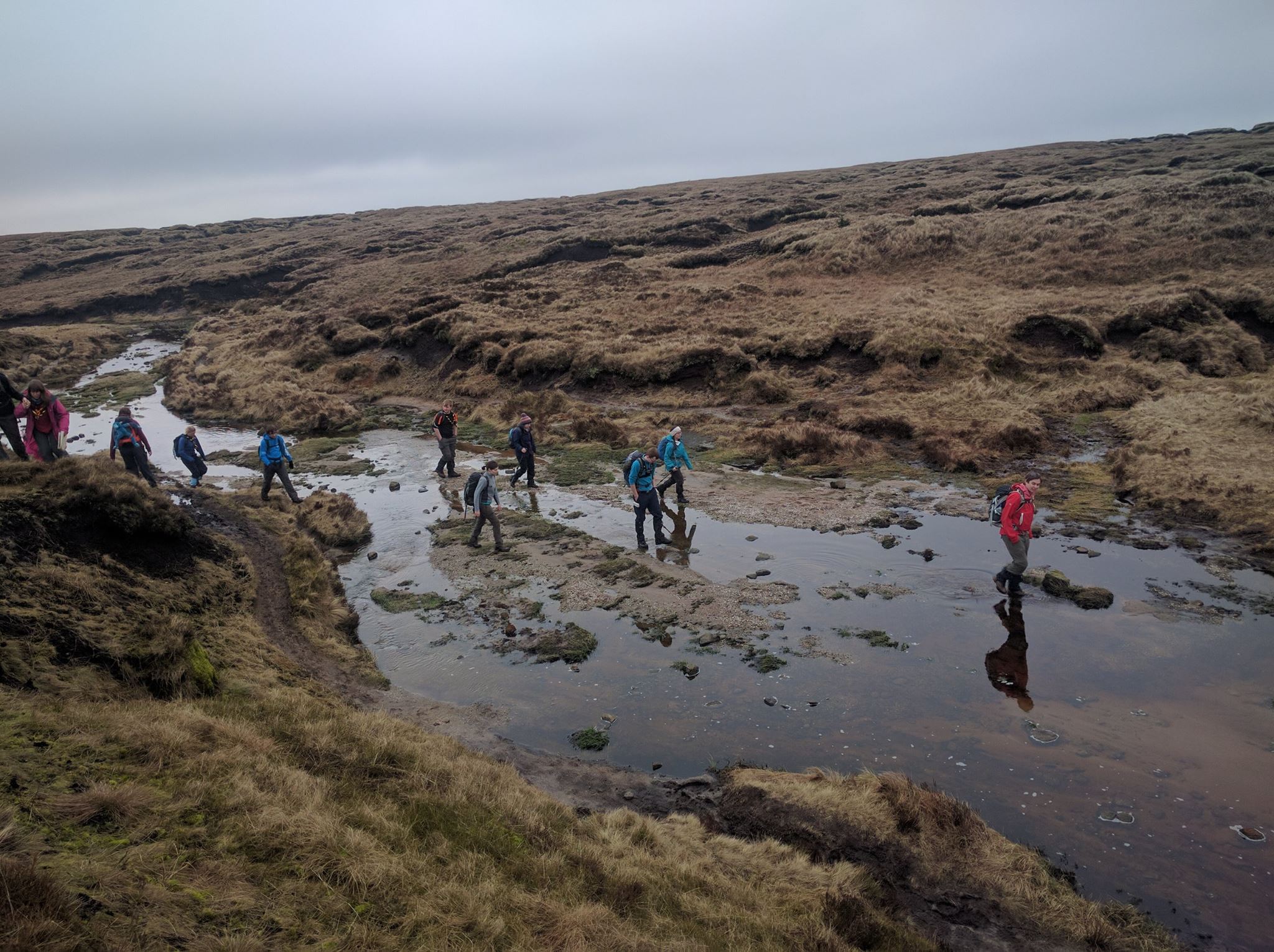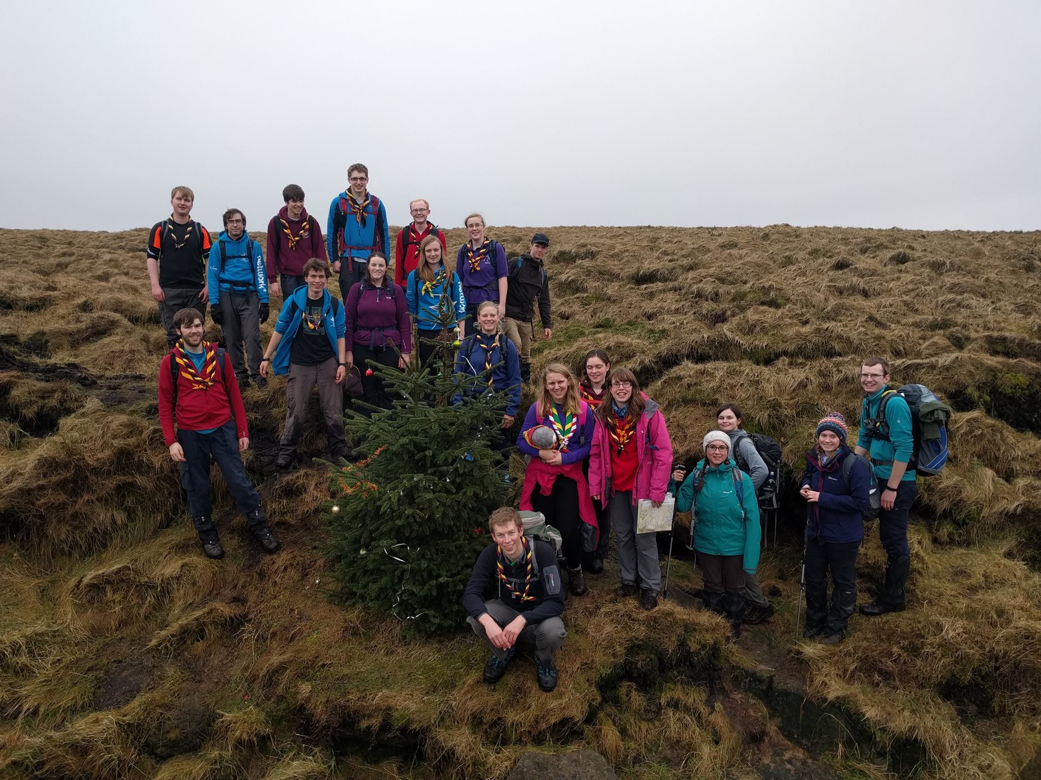 Once all of the compulsory group and award holder photos had been taken we continued to the summit of Kinder scout. At the top there were numerous selfies and standing on trig points as well as enjoying well deserved lunch break before heading on along the ridge and past the waterfall. It was fairly uneventful up until we reached the stream where some ended up having laughing fits from falling in the rather deep mud. We also came across a Christmas tree alongside the river where we found the perfect opportunity to sing ‘All I want for Christmas’ and there were plenty of songs to be sung along the route. Further along our way we met a lady who looked a little lost in a bog and so we happily assisted her back. All in all it was a fantastic walk up and down Kinder Scout! There was even more excitement to enjoy back at base with jigsaw puzzles, board games and a visit from other SSAGO clubs!